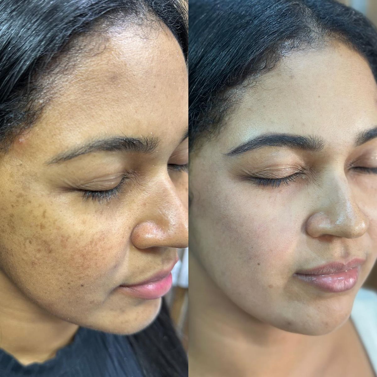 Marcas que permanecen después de los brotes y afectan la uniformidad del rostro. La piel se ve irregular, con zonas más oscuras que tardan en aclararse y hacen que el problema sea evidente incluso sin brotes activos.
